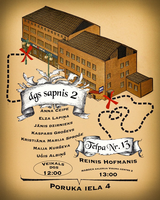 Grupu izstādē “dgs sapnis 2” lietoto apģērbu veikalā “dgs” piedalīsies Anna Ceipe, Jānis Dzirnieks, Maija Kurševa, Kaspars Groševs, Uģis Albiņš un Elza Lapiņa, bet par izstādes scenogrāfisko ietvaru rūpēsies Kristiana Marija Sproģe.