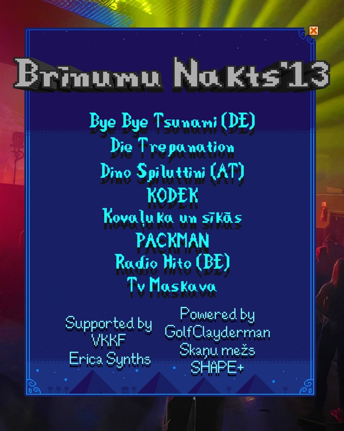 Biļetes uz koncertuzvedumu Brīnumu Nakts'13 ir pieejamas Resident Advisor.