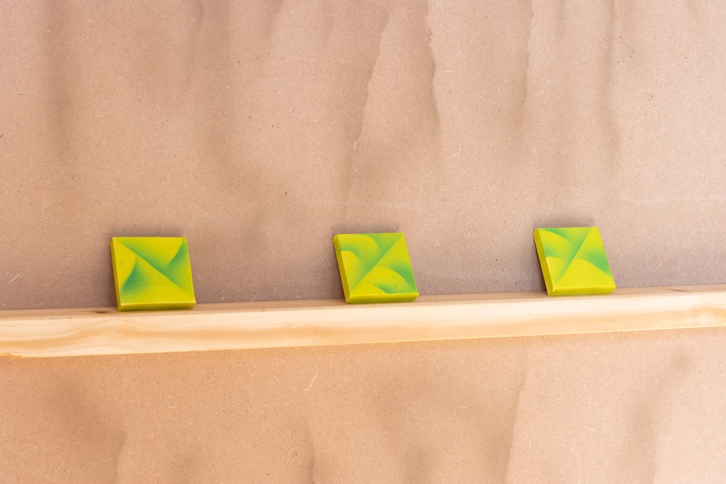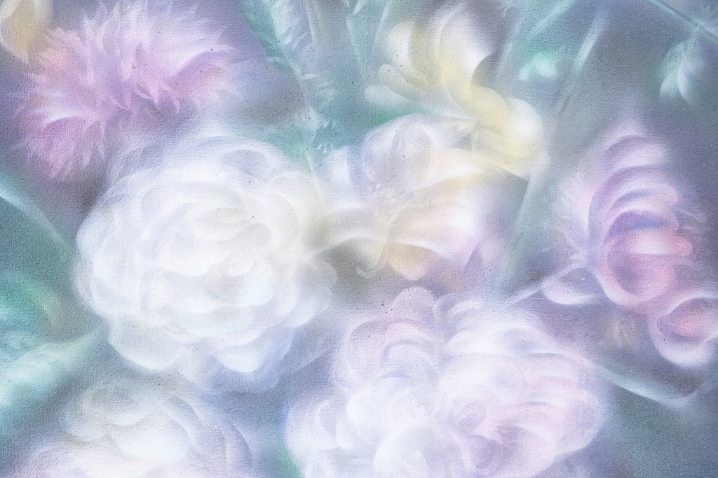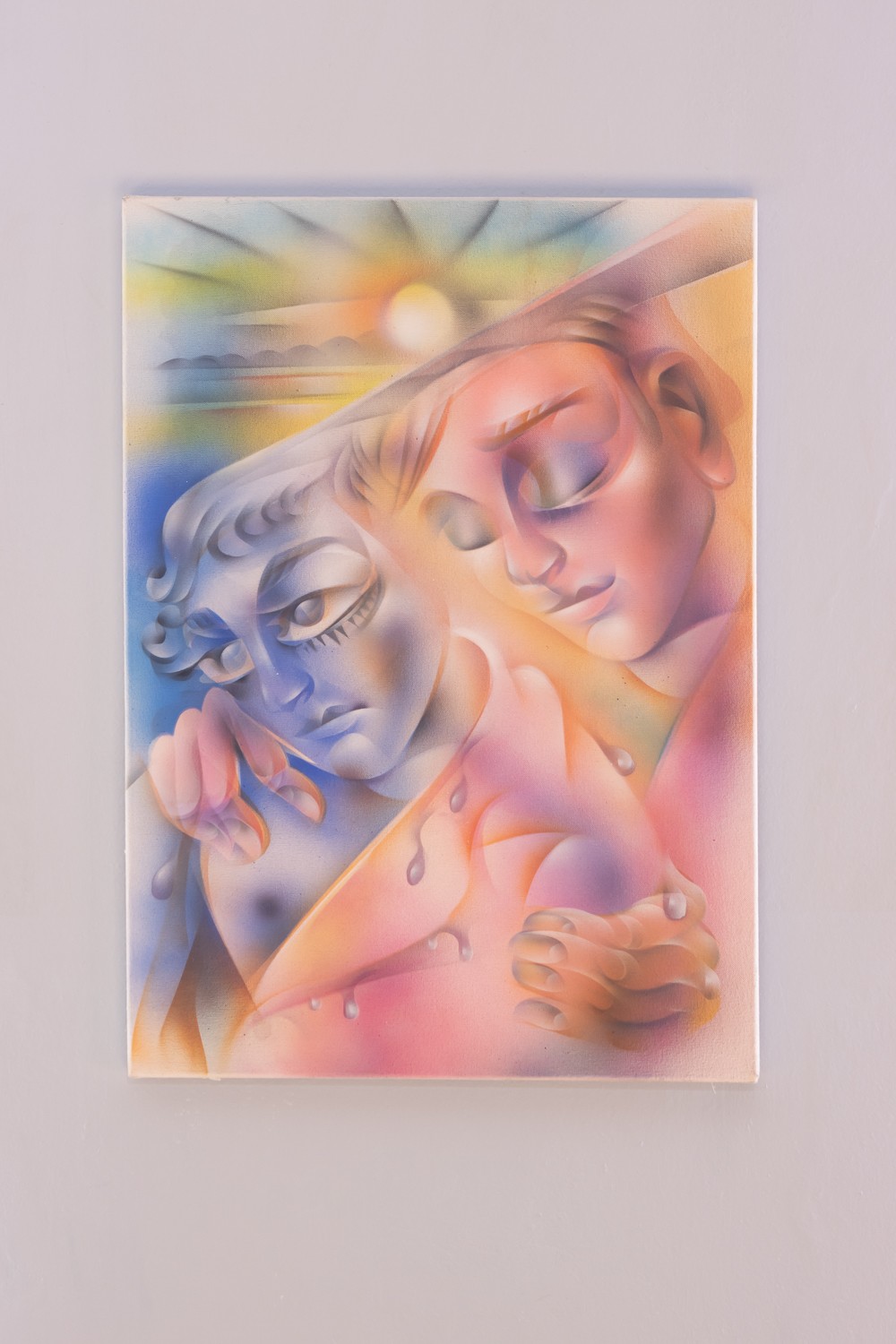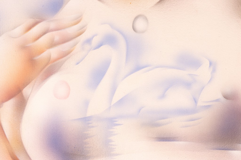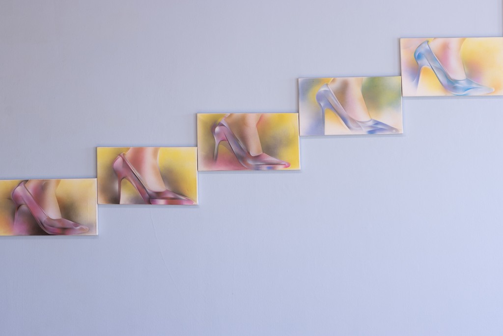 “In painting, I’m interested in pure and beautiful forms — the content is often secondary. A woman’s shoe is just a shoe, but when multiplied many times across canvases, it begins to tell a story and gains new meaning. In my works, the comic often plays with the romantic. I paint with an airbrush and use stencils. In this technique, the works emerge hazily sharp — the depicted forms merge and blur, like a dream you’re trying to recall, but only fragments remain.